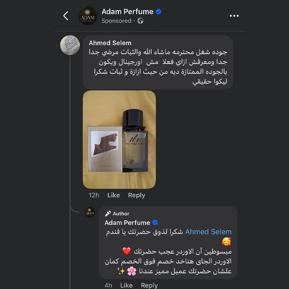 ضمان 7 أيام – جرب ريحتك المفضلة، ولو محستش بالرضا تقدر ترجع أو تستبدل بكل سهولة